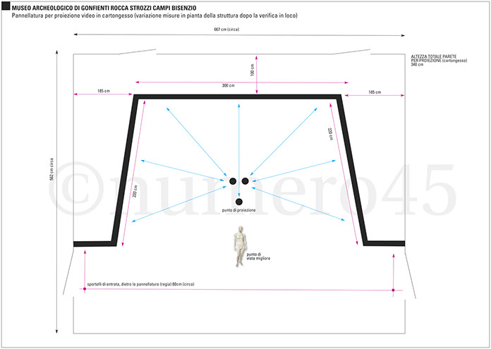 Ricostruzione digitale dei punti d'osservazione della sala multimediale per la Rocca Strozzi